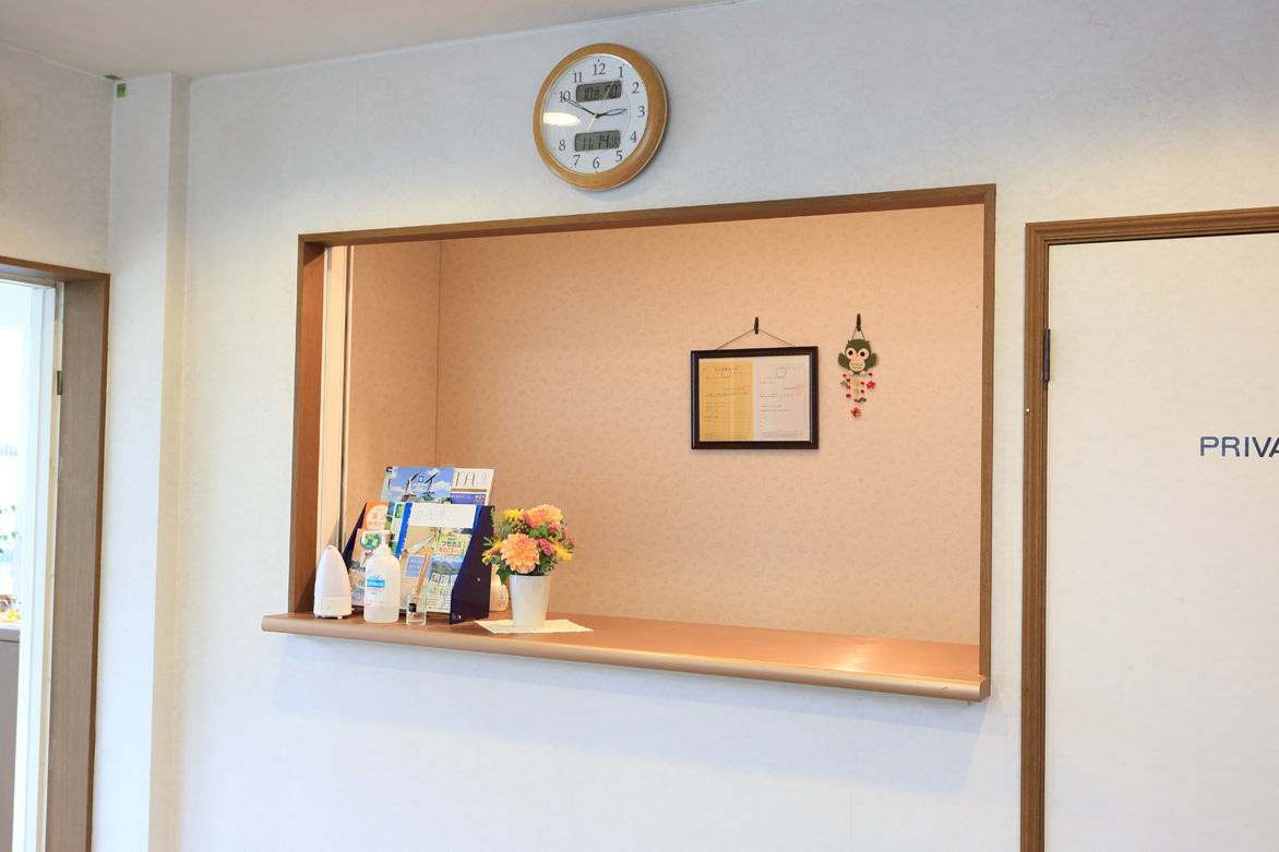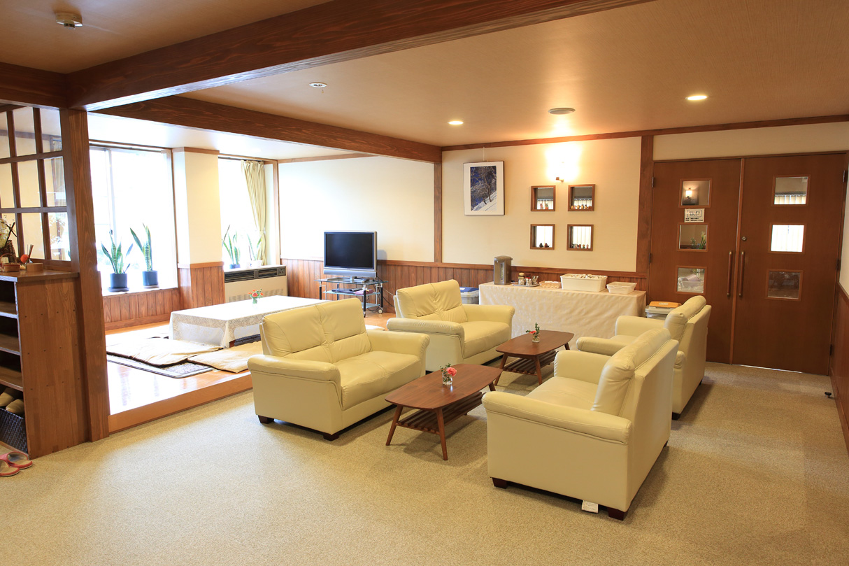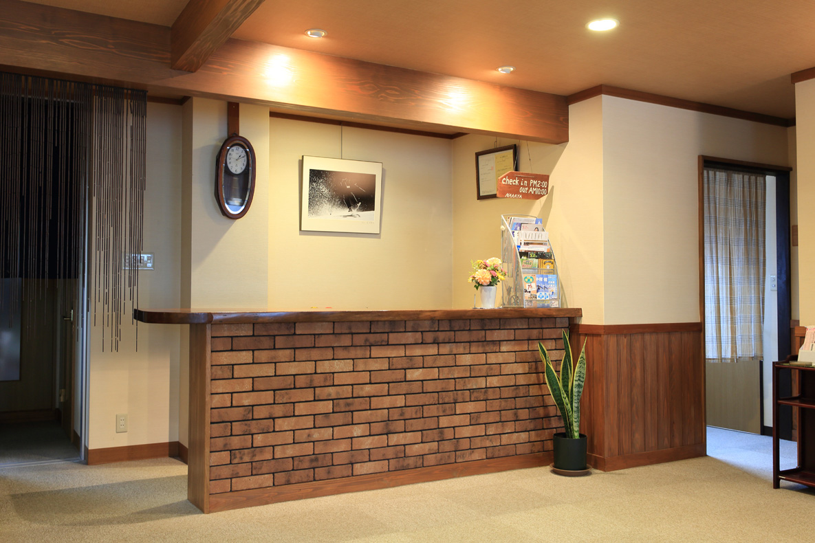 玄関を入ると正面にフロントがございます。こちらで、チェックインやチェックアウトの手続きをお願いします。